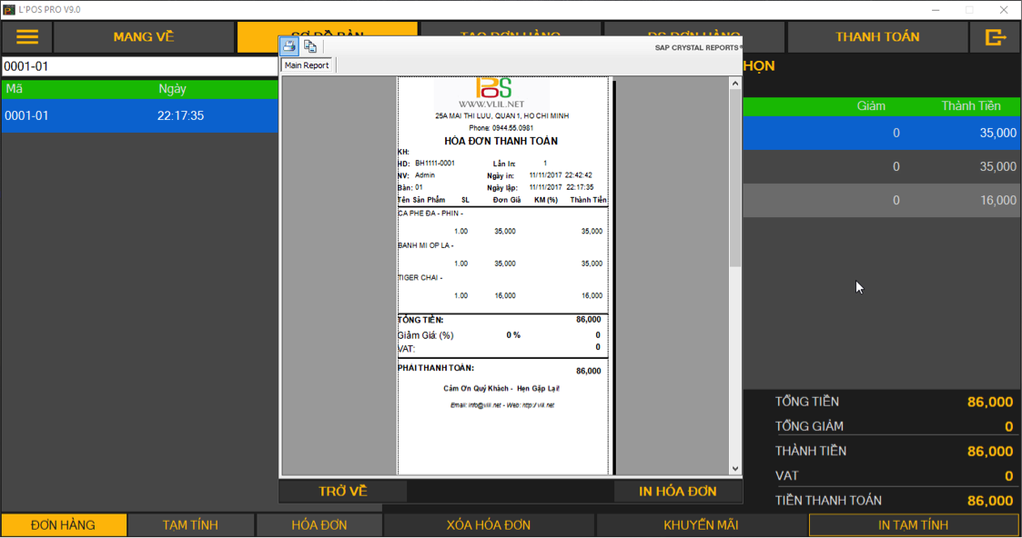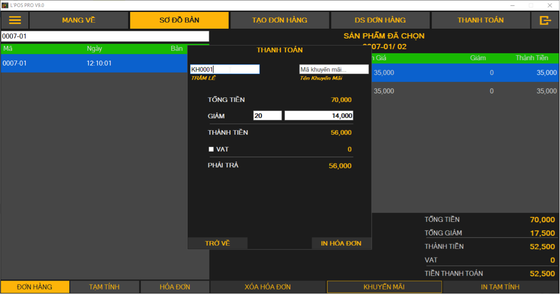 CHỨC NĂNG BÀN - IN BILL TẠM TÍNH