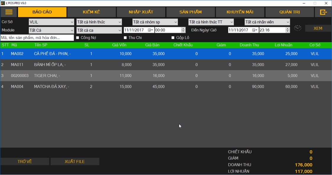 Báo cáo doanh thu và lợi nhuận là một phần quan trọng nhất trong tổng thể một hệ thống Phần mềm quản lý.