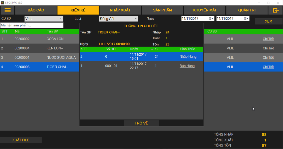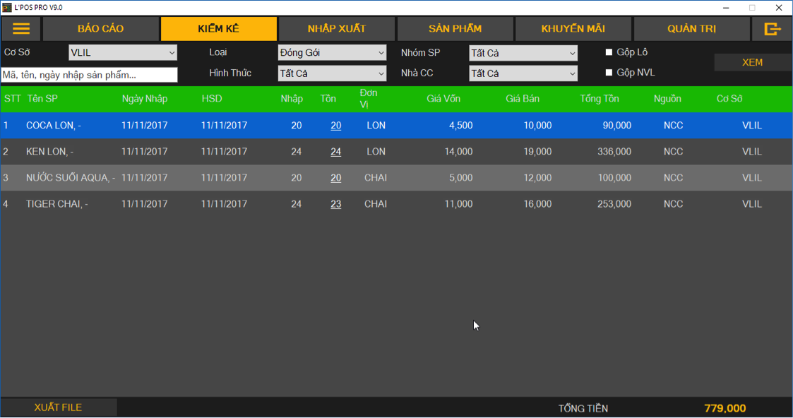 Nhập Xuất Tồn cho thấy rõ quy trình luân chuyển Nhập – Xuất sản phẩm, và từ đó sẽ có các phát hiện thất thoát dựa trên số lượng kiểm kê tồn thực tế. Mọi diễn tiến xuất nhập đều được ghi nhận với thông tin cụ thể rõ ràng.
