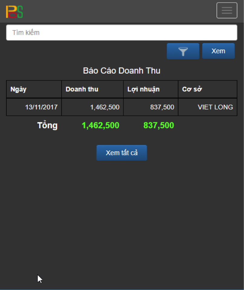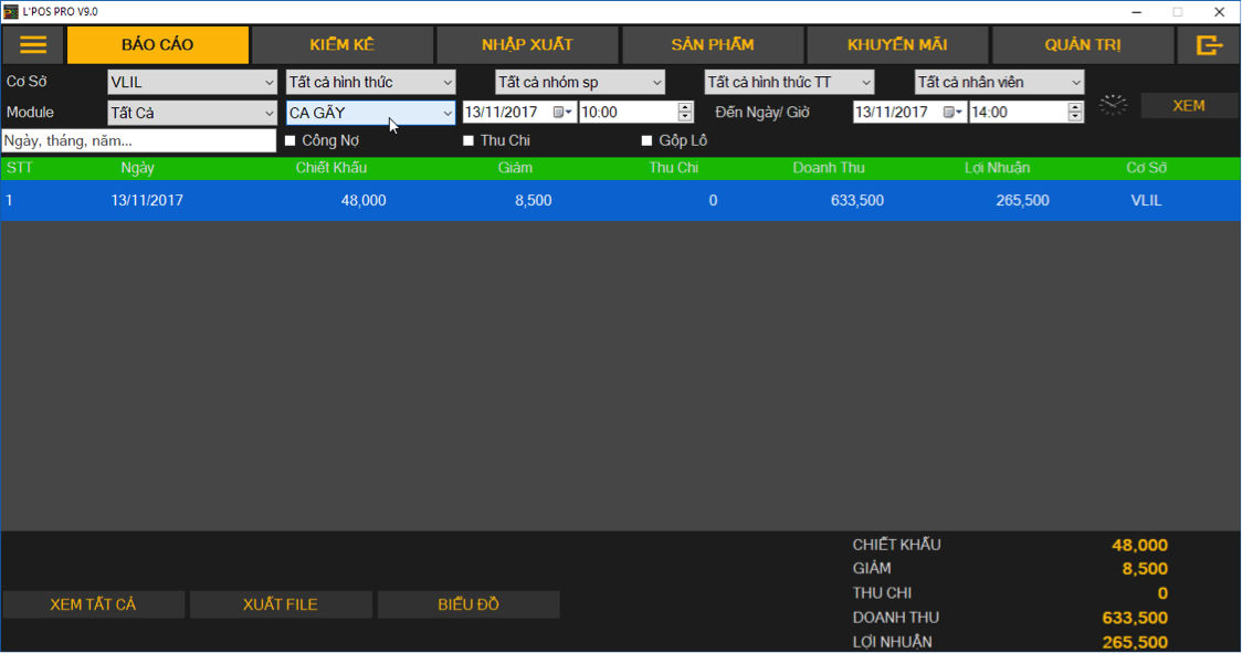 XEM BÁO CÁO DOANH THU THEO CA